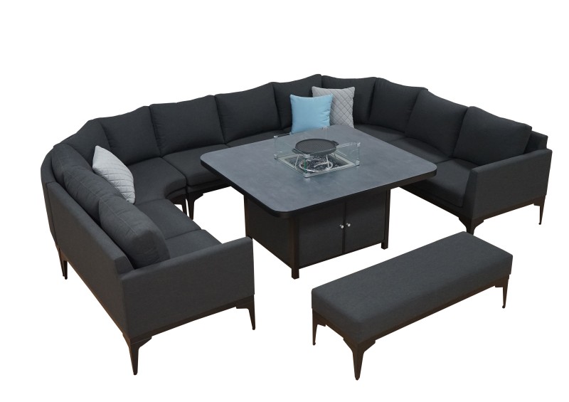 U Shape Corner Sofa Set With Fire Pit Table Features